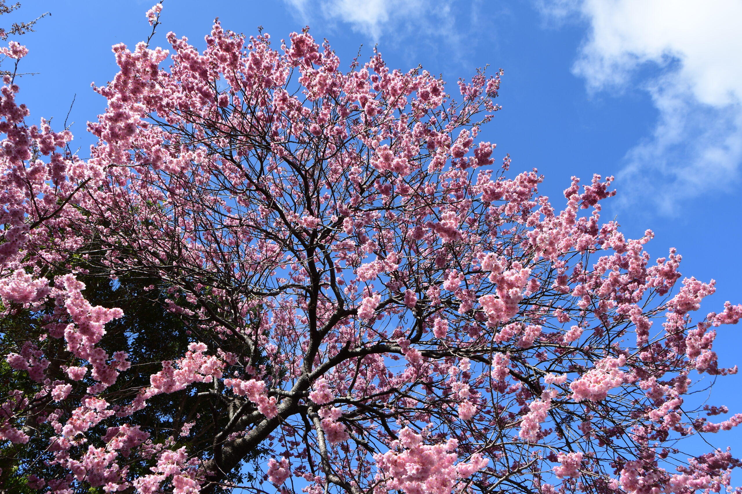 昨日の大雨で少し散ってしまったけれど、椿寒桜(雪割桜)が満開!