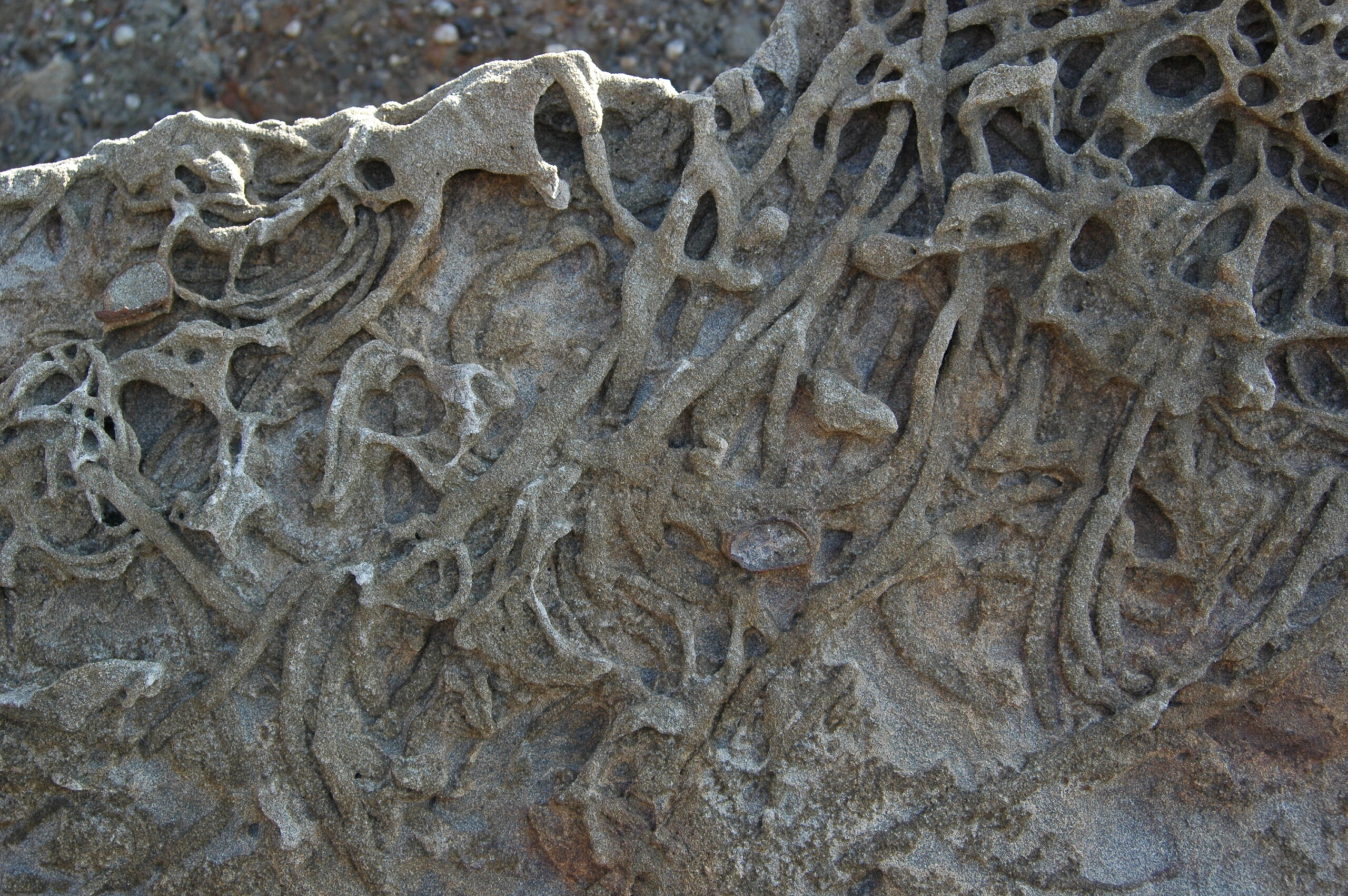 写真は見残し海岸の❝生痕化石❞。